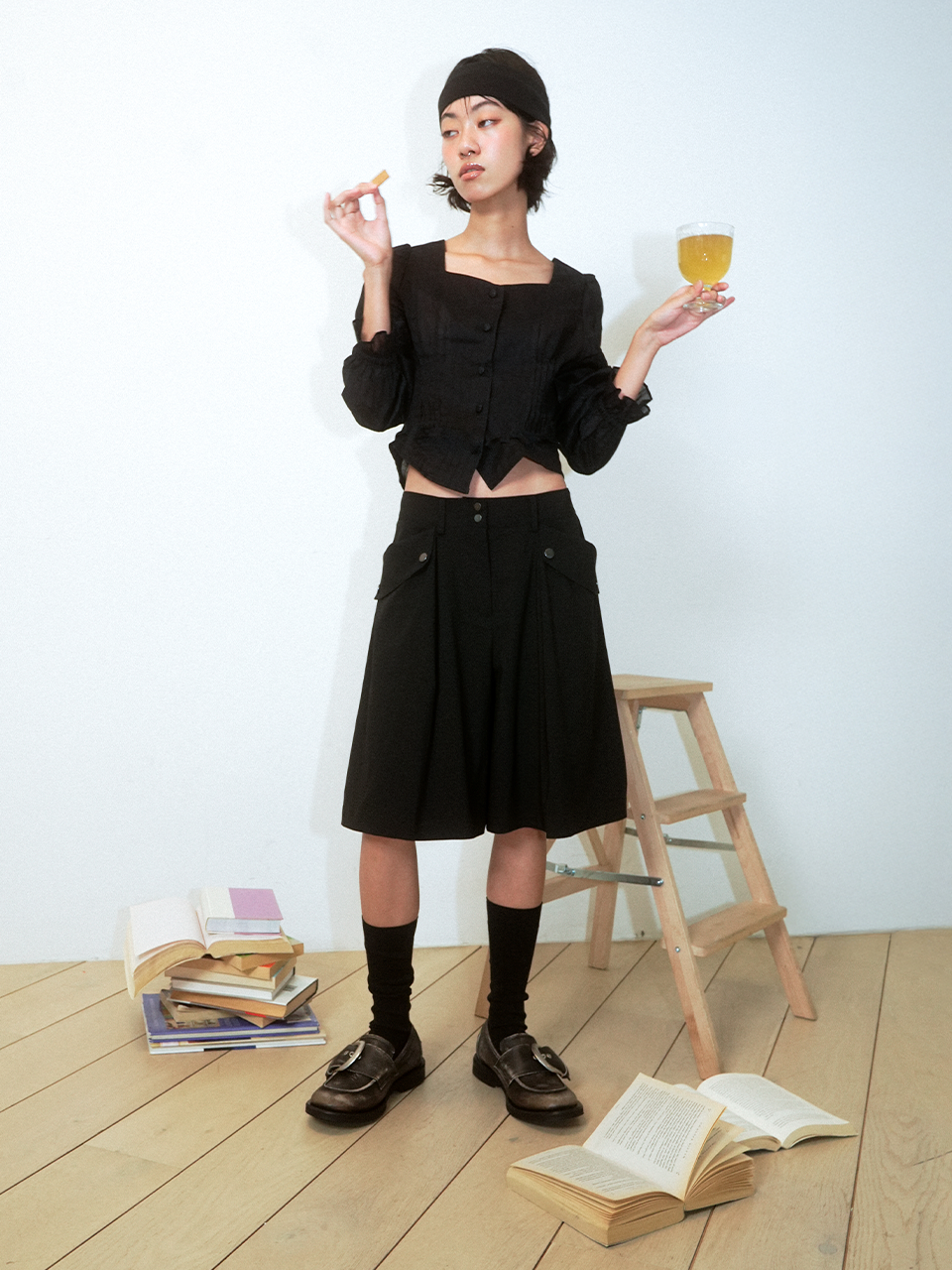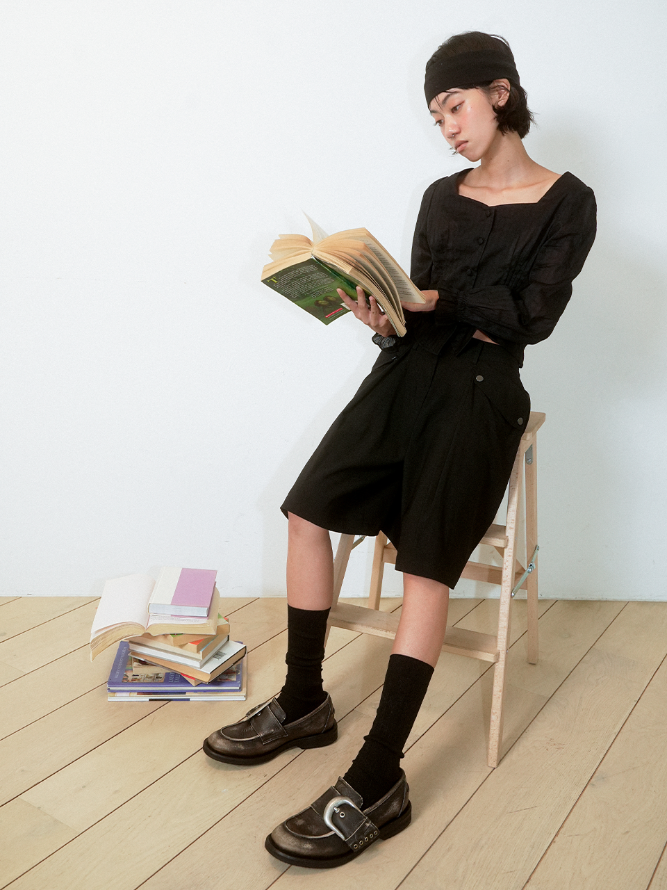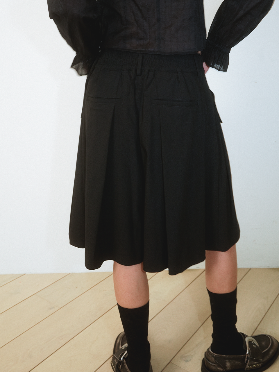 FOLDED PAGE BERMUDA PANTS (BLACK)