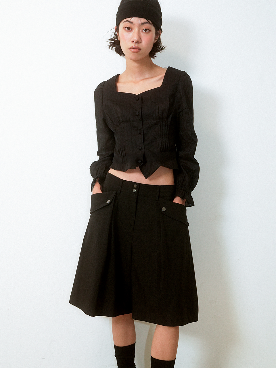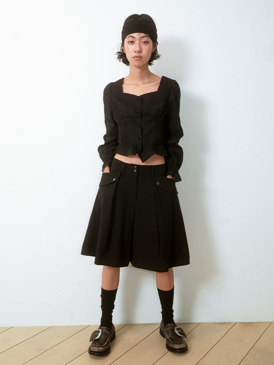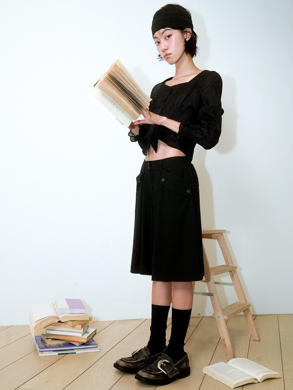 FOLDED PAGE BERMUDA PANTS (BLACK)