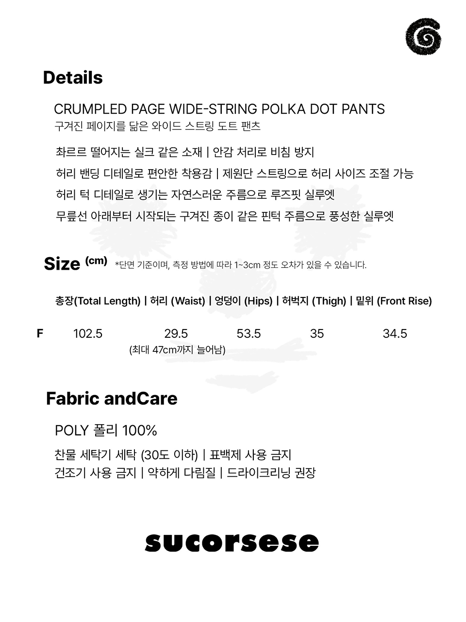 - 명시된 공지 및 세탁 방법을 확인하지 않아 발생하는 문제에 대해서는 보상의 책임을 지지 않습니다.