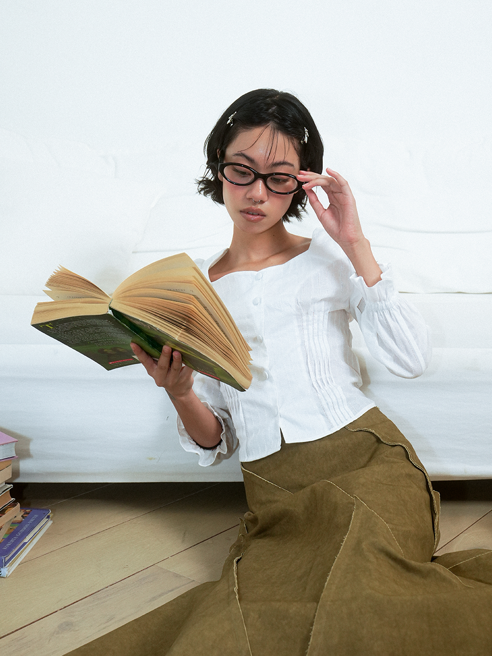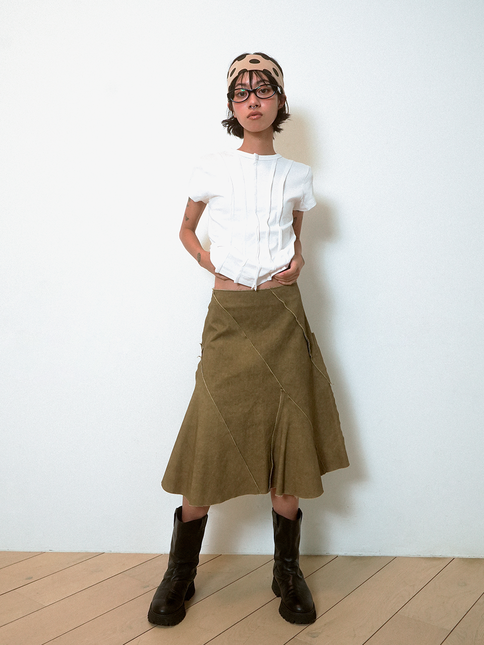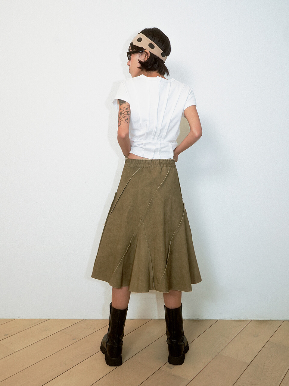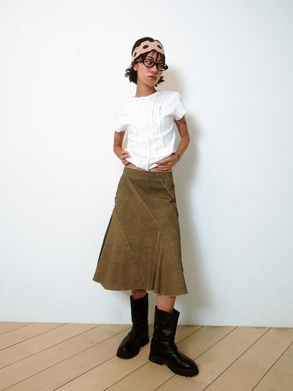 RIPPED PAGE MIDI SKIRT (SAND BROWN)