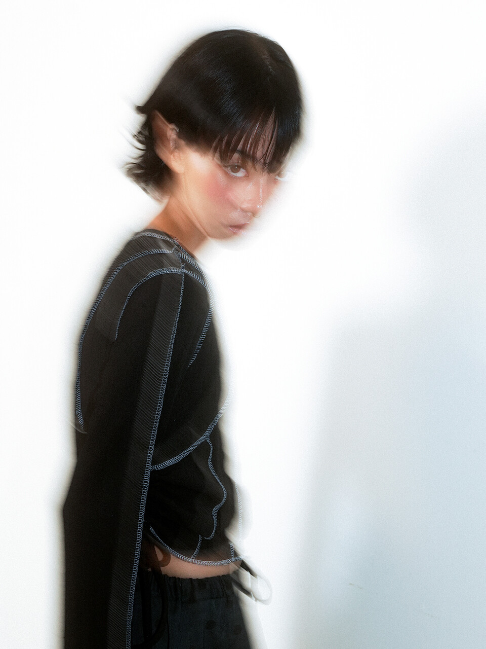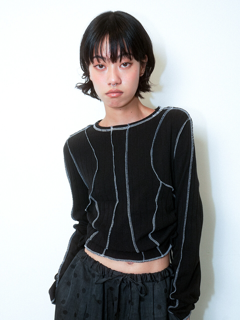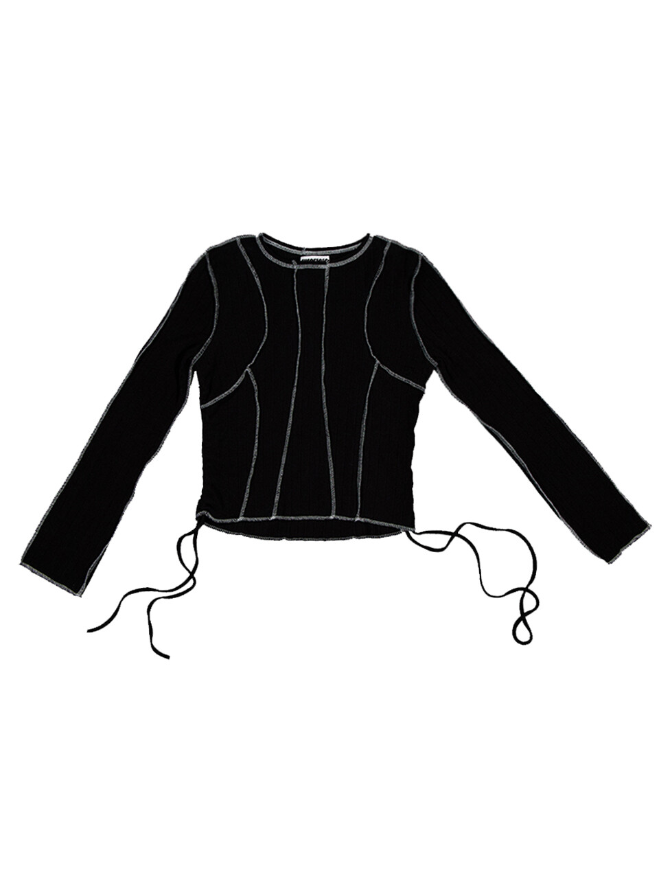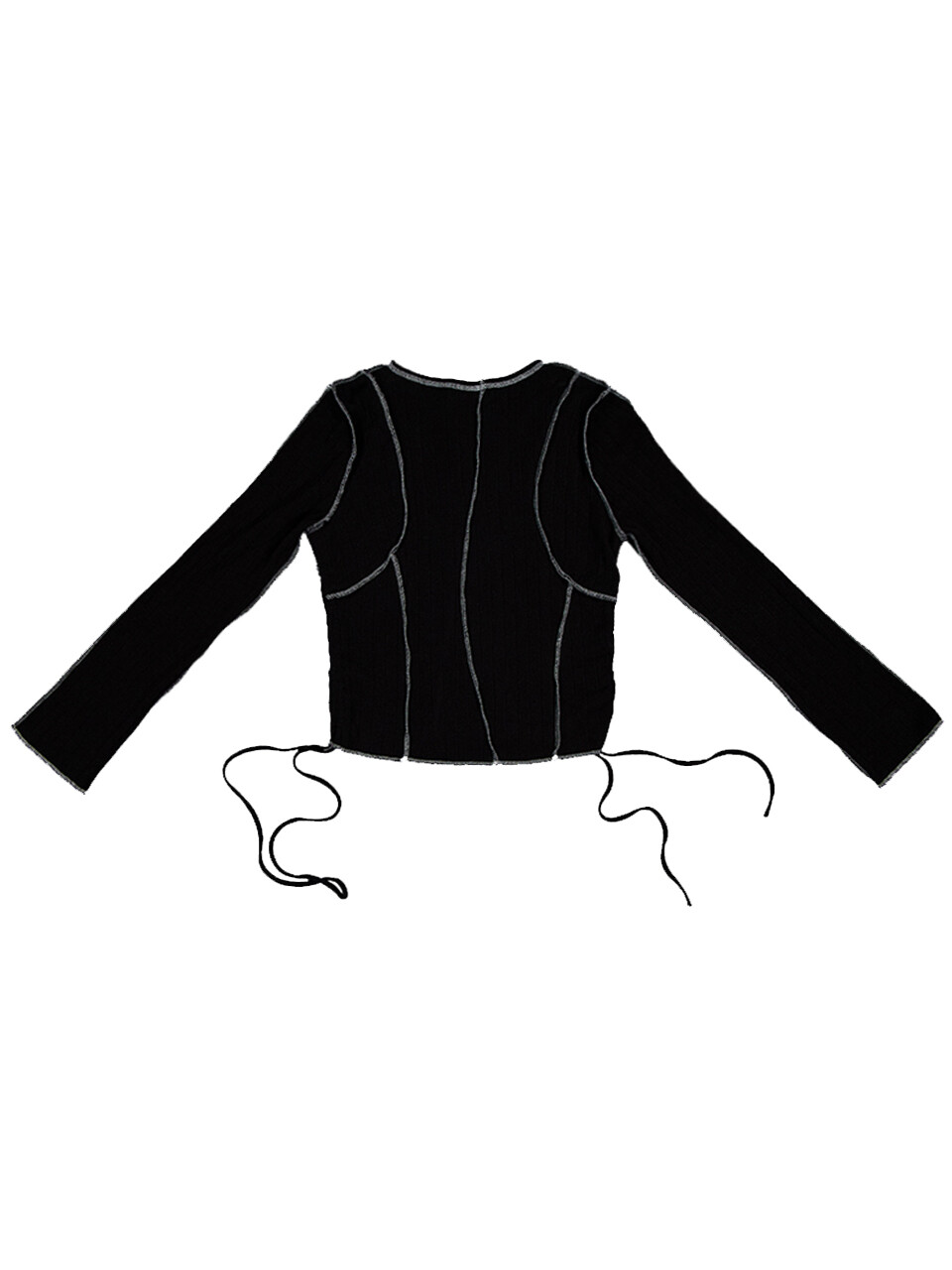PIECE CUTOUT LONG SLEEVES TOP (BLACK)