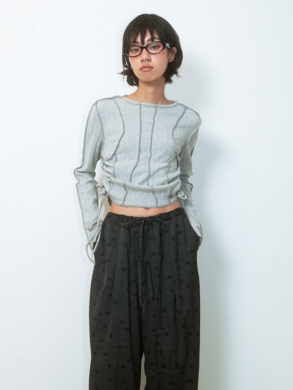 PIECE CUTOUT LONG SLEEVES TOP (MELANGE)